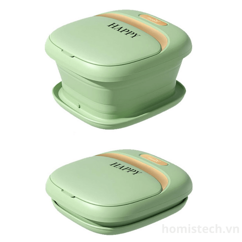 Một trong những ưu điểm nổi bật của bồn ngâm chân massage Happy Fres AM là khả năng gấp gọn thông minh. Thành bồn được làm từ cao su dày dặn, có nếp gấp chắc chắn, dễ dàng gấp gọn sau khi sử dụng và thuận tiện khi cất giữ hoặc mang theo. Trọng lượng nhẹ chỉ 1.9kg giúp người dùng di chuyển dễ dàng.