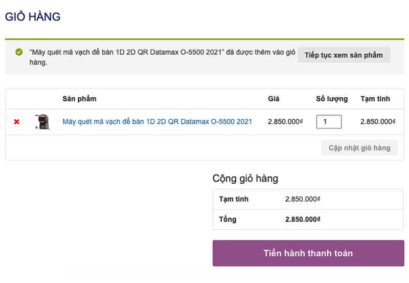 Sản phẩm Quý khách vừa chọn sẽ được chuyển và ghi nhớ vào giỏ hàng. Ở đây Quý khách có thể cập nhật số lượng hàng hóa cần mua hoặc muốn xóa bỏ.