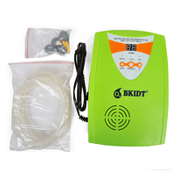 - Chế độ “OZONE”: Khi bật máy chế độ Ozone được kích hoạt luôn và có biểu hiện sáng nhấp nháy. Nhất nút “UP” hoặc “DOWN” để tăng hoặc giảm thời gian, mỗi lần tăng hoặc giảm là 5 phút. Tuỳ vào lượng thực phẩm cần xử lý mà sẽ có một mức độ thời gian phù hợp. Sau khi hết thời gian đặt làm việc, máy sẽ ngừng hoạt động và đèn báo OZONE lại nhấp nháy. Muốn sử dụng tiếp thì làm lại như ban đầu. Vì máy có 2 đầu ra ozone nên có thể dùng để sục 1 lúc 2 chậu chứa thịt cá và rau củ quả riêng biệt.